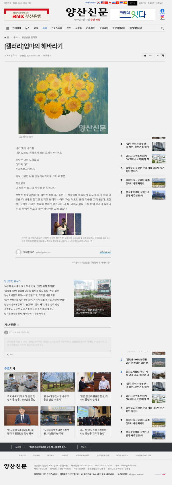 양산신문 > 갤러리 > 엄마의 해바라기